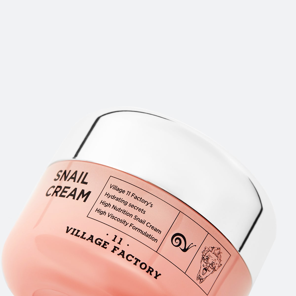 Snail Cream, Village 11 Factory, cremă reparatoare, calmantă, cu secreție ultrafiltrată de melc, propolis, alantoină, adenozină și extract din semințe de chia. O textură lejeră, cu absorbție rapidă ce se adresează tuturor tipurilor de ten, dar special concepută pentru un ten gras, mixt sau cu ten cu tendință acneică.